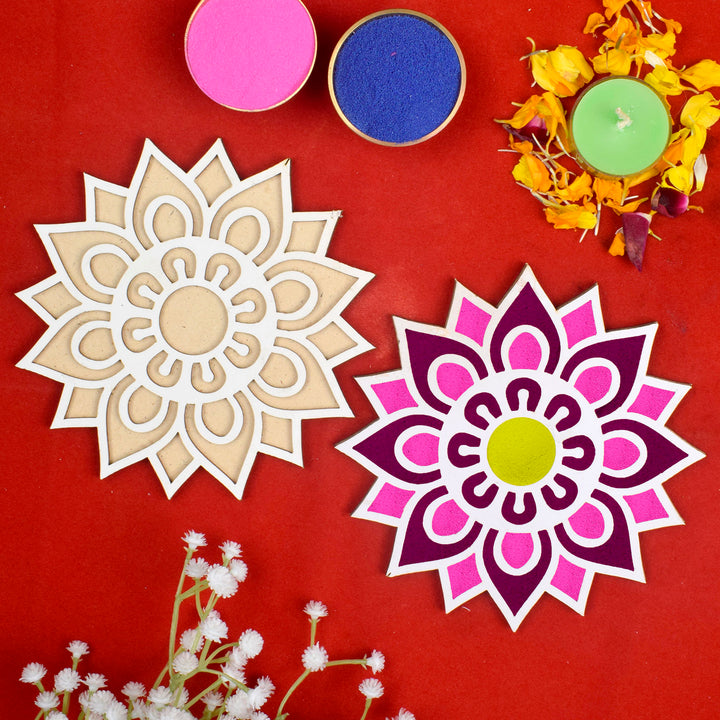 About the Product: Discover the artistry of rangoli like never before with our exquisite rangoli templates. Crafted with precision and designed to inspire, our rangoli templates are the perfect canvas for your creative expression. Why Choose Our Rangoli Templates? Elevate Your Decor: Our templates add an elegant touch to your home, event, or celebration, creating a captivating visual centerpiece. Stress-Free Artistry: Whether you're a seasoned rangoli artist or a beginner, our templates simplify the process, allowing you to focus on creativity rather than precision. Festive Celebrations: Perfect for Diwali, Navratri, weddings, and any festive occasion, our rangoli templates enhance the festive spirit. Memorable Events: Make your events memorable with unique rangoli designs that leave a lasting impression on your guests. Unleash your artistic flair and bring your rangoli designs to life with our high-quality rangoli templates. Transform any space into a work of art and let your creativity shine. Explore our collection today and start creating your own masterpiece!