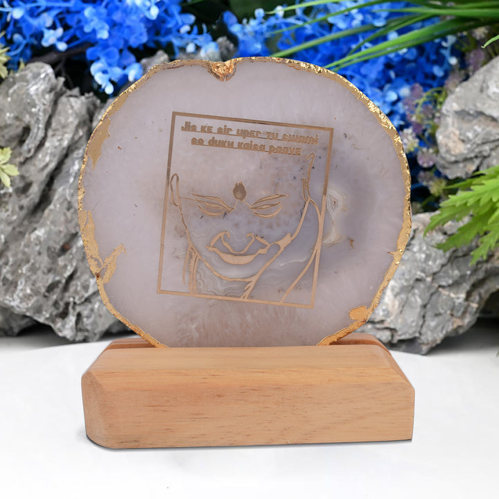Guruji agate stand | Spiritual agate display | Guruji photo frame | Divine energy stone stand | Agate stone guru idol | Meditation decor stand | Agate spiritual decor | Guruji pooja stand | Crystal energy decor | Religious gift item |