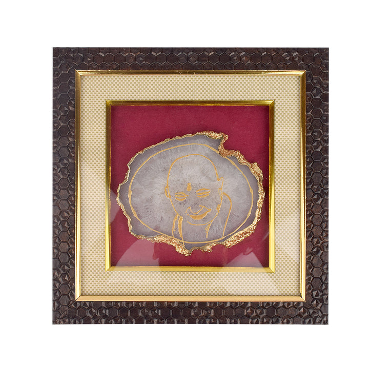 Guruji agate frame | Wooden Guruji photo frame | Spiritual agate decor | Guruji wall hanging | Blessings in agate | Guruji natural stone frame | Wooden spiritual frame | Agate stone wall art | Religious gift item | Home altar decor |