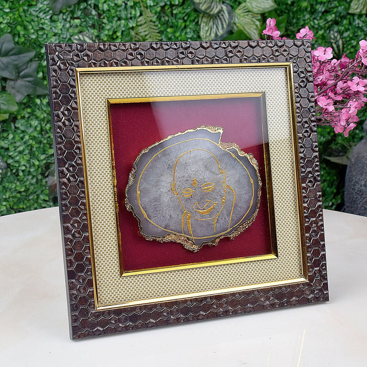 About Product: Preserve your cherished memories with the divine touch of Guruji's blessings in our Agate Wooden Photo Frame. Crafted with precision and love, this unique frame combines the natural beauty of agate with the warmth of wood.