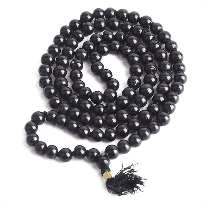 Black Hakik Jap Mala for Protection & Strength | Spiritual Mala for Root Chakra Activation | Meditation Beads for Focus & Grounding | Healing Mala for Energy Shielding | Black Agate Mala for Stability & Resilience |
