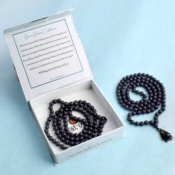 Black Tourmaline Hakik Jap Mala for Protection & Grounding | Energy Cleansing Mala for Aura Shielding | Healing Mala for Stress & Anxiety Relief | Meditation Beads for Spiritual Purification | Black Tourmaline Mala for Confidence & Stability |