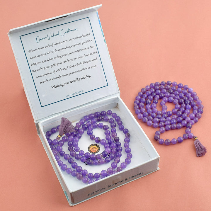 Hakik Jap Mala (Purple Agate) | Purple Agate Jap Mala for Spiritual Growth | Crystal Mala for Wisdom & Enlightenment | Meditation Beads for Third Eye & Crown Chakra | Healing Mala for Clarity & Inner Peace | Purple Hakik Mala for Intuition & Focus |