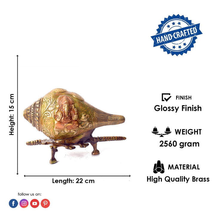 • Item Name: Handcrafted Indian Brass Shankh With Ganesha Engraving with Stand