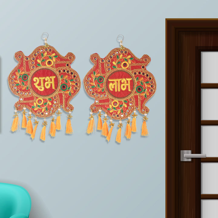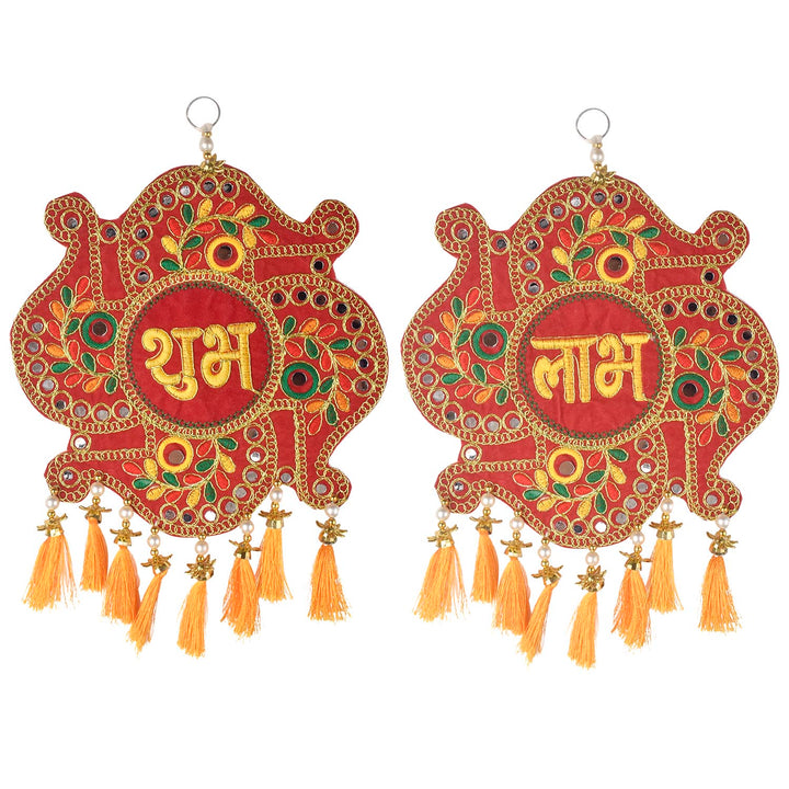 Item Name: Handcrafted Subh Labh Wall Hanging with Tassels