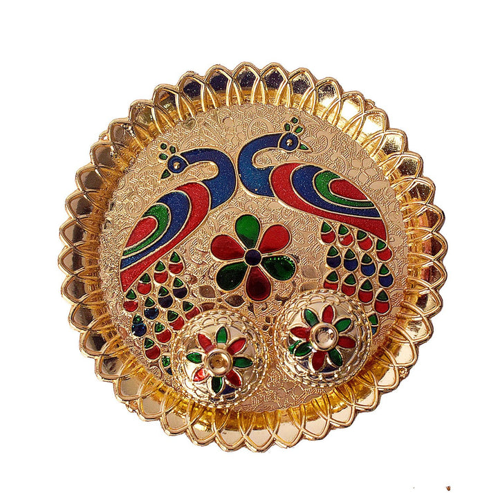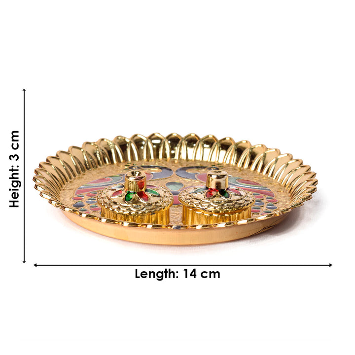 • Item Name: Kumkum Holder Featuring Artistic Peacock Design