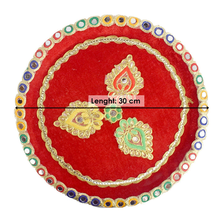 Item Name: Leaf Design Glowing Karwa Chauth Thali Set - 3pc