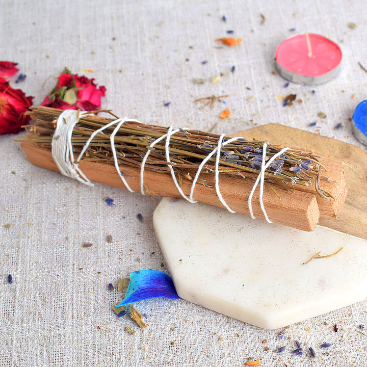 MEDITATIVE WOOD WITH ROSEMARRY & LAVENDERS SMUDGES – Satvikworld.com
