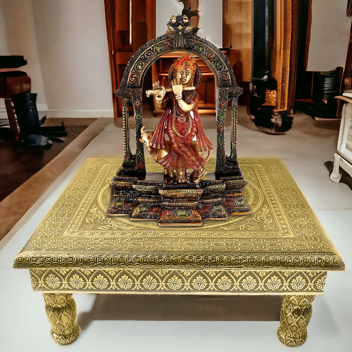 • Description: Meenakari Pooja Chowki, is a traditional and ornate platform used in religious ceremonies, particularly in Hindu worship settings. The term "Meenakari" refers to the art of decorating metal surfaces with vibrant colors and intricate designs.