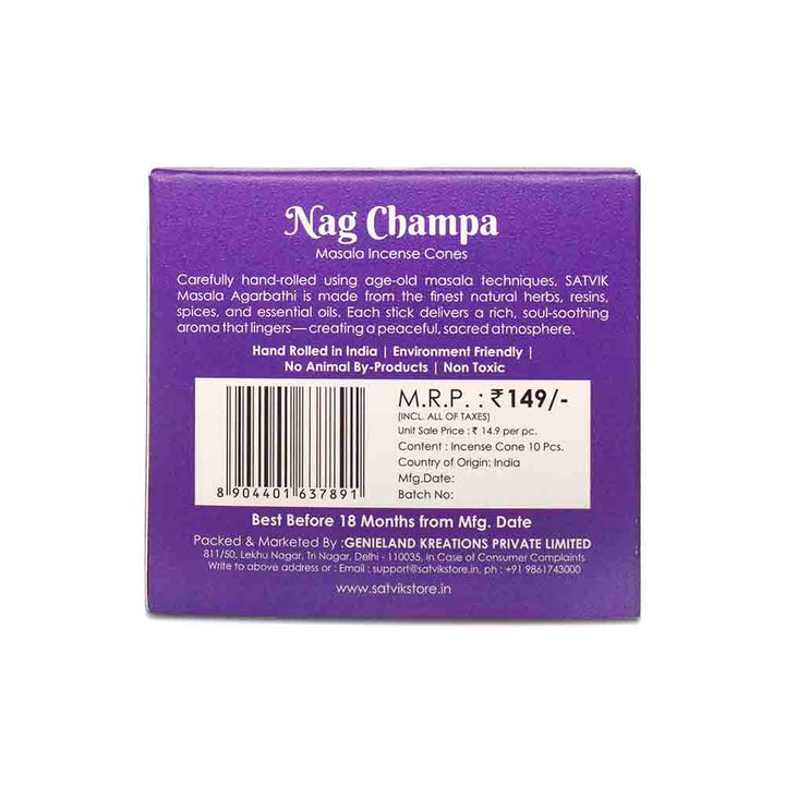 Buy Nag Champa Pure Masala Incense Cones Online | Satvikworld.com