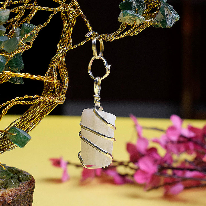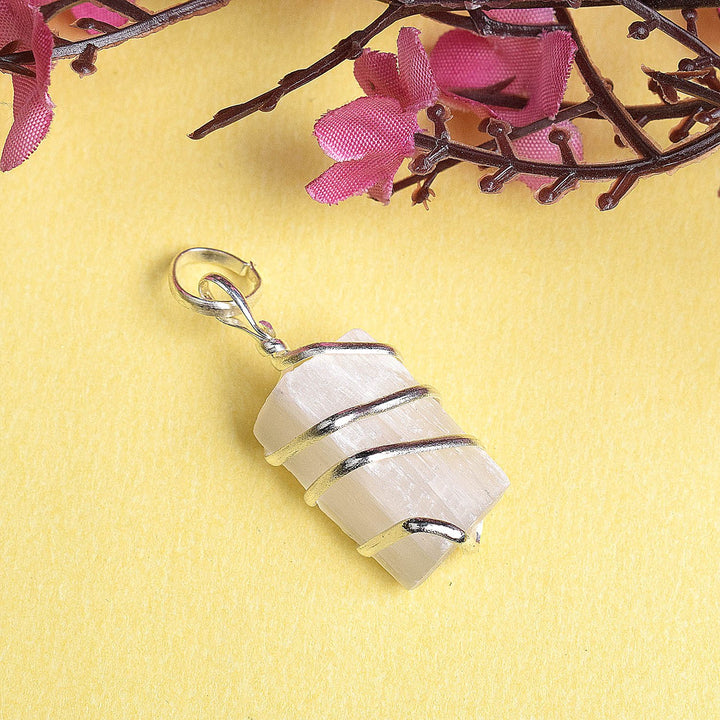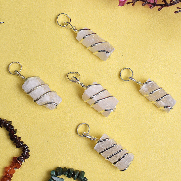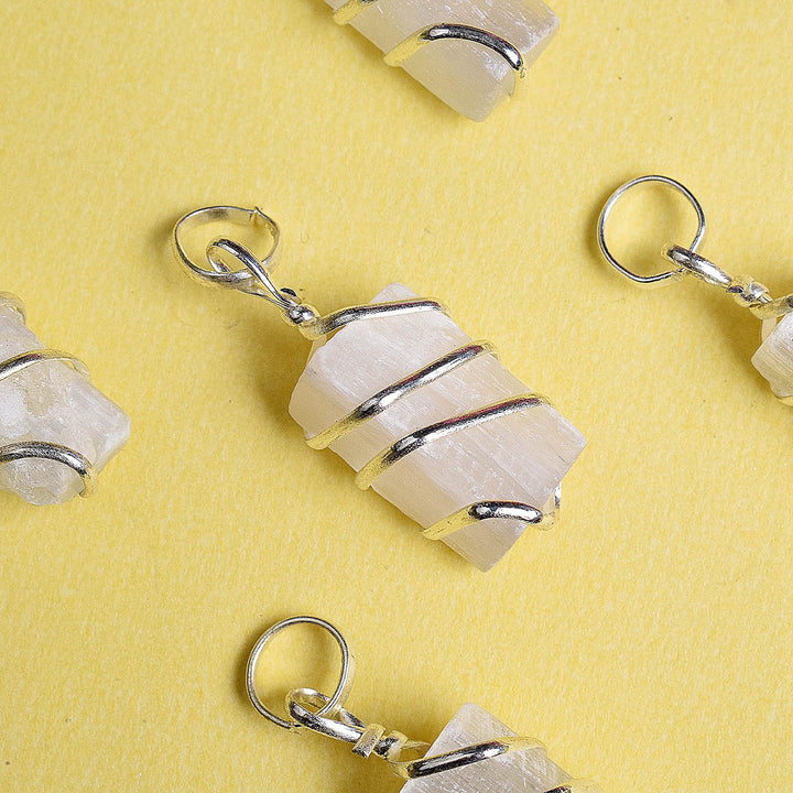 Natural Wire Wrapped Selenite Crystal Stone Pendant – Satvikworld.com