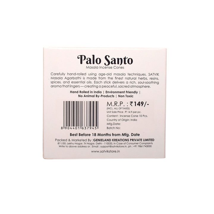 Buy Palo Santo Pure Masala Incense Cones Online | Satvikworld.com