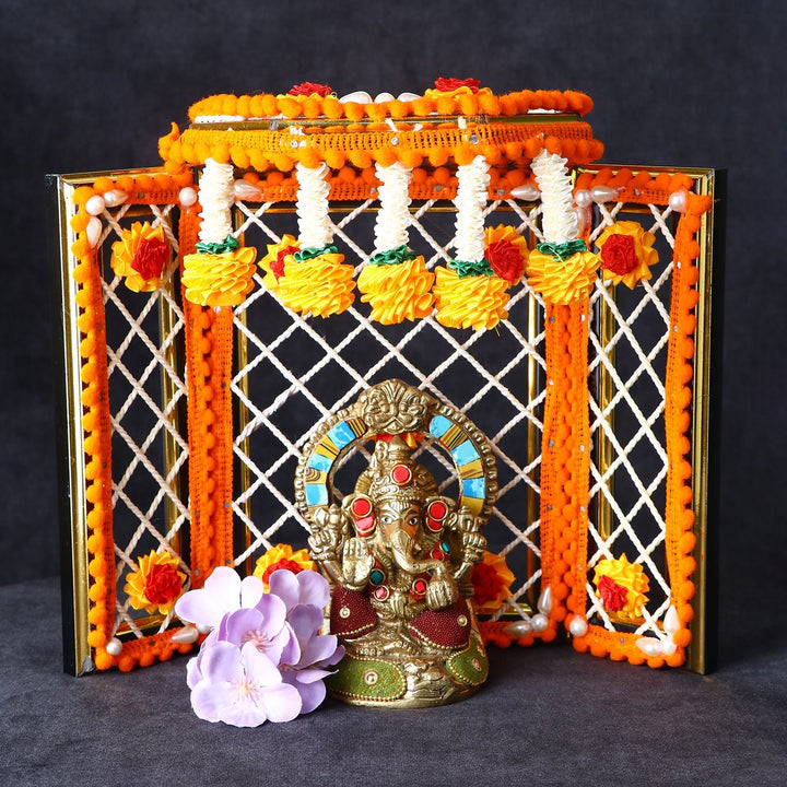 Description: On significant festivals, Phool Banglas are typically used as a decoration and a backdrop for Ganpati. These phool banglas are made by the most talented artisans in West Bengal and Uttar Pradesh. On the occasions of Ganesh Chaturthi, these are widely used at pandals and mandirs as well as homes and businesses.