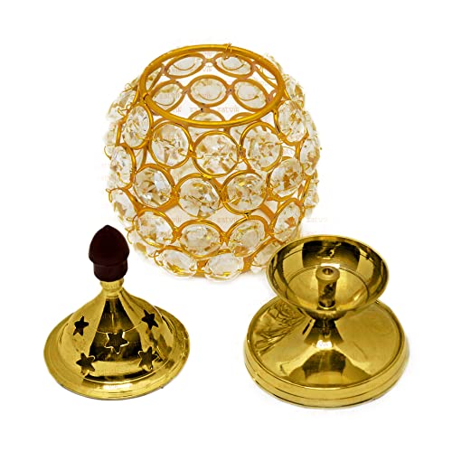 Buy Pure Brass Oval Shape Crystal Glass Chimney Diya | Satvikworld.com