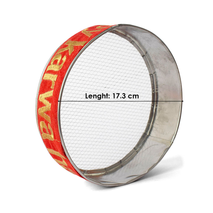 Design: Beautiful Handcrafted Designer Karwa Thali with Fabric all over the Thali and Lace Work all over the Lota and Sieve (Channi), Which makes it more Attractive.