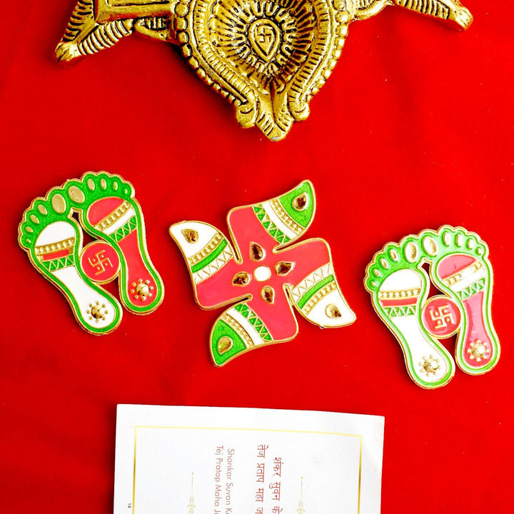 Celebratory Glow Swastik and Charan Paduka Stickers Set of 3
