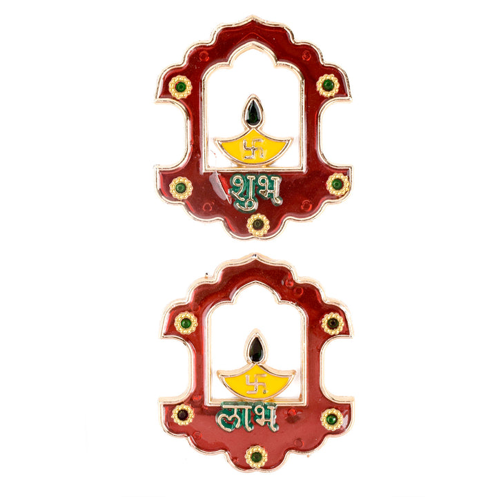 Shubh Labh Leaf With Swastik Wooden StickerPackage Contains: 1 Pair of Diyas Sticker