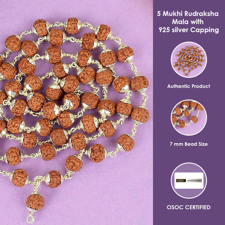 • Material : Original 5 Mukhi Himalya Rudraksha Mala with silver Capping