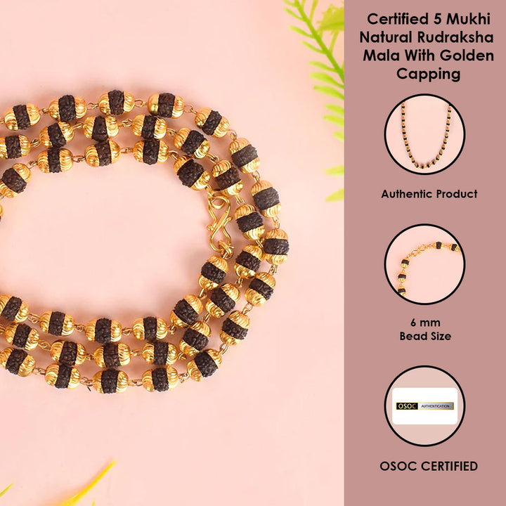 • Item Name: 100% Certified 5 Face Natural Rudraksha Mala with Golden Capping