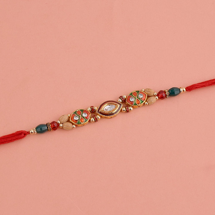 • About Product: Celebrate Raksha Bandhan with our handcrafted Rakhis! Our collection includes beaded Rakhis, elegant Kundan Rakhis, and opulent Zardosi Rakhis, all meticulously designed with love and care. These exquisite creations are a perfect way to express your affection and strengthen the bond with your siblings. Each Rakhi reflects the artistry of our skilled artisans, making them unique and special. Choose from a variety of vibrant colors, intricate patterns, and sparkling stones to find the perfect Rakhi that complements your sibling's style. Embrace the tradition of Raksha Bandhan with our handcrafted Rakhis and create cherished memories that last a lifetime. Shop now and make this Raksha Bandhan an extraordinary celebration of love and togetherness!