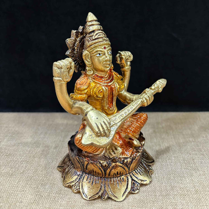 • Material: The Saraswati Mata Murti is made from High-Quality Brass Material