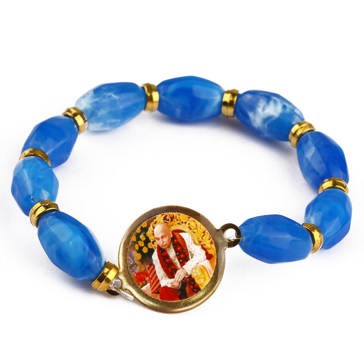 Aesthetic Blue Long Beads Bracelet with Jai Guruji Swaroop