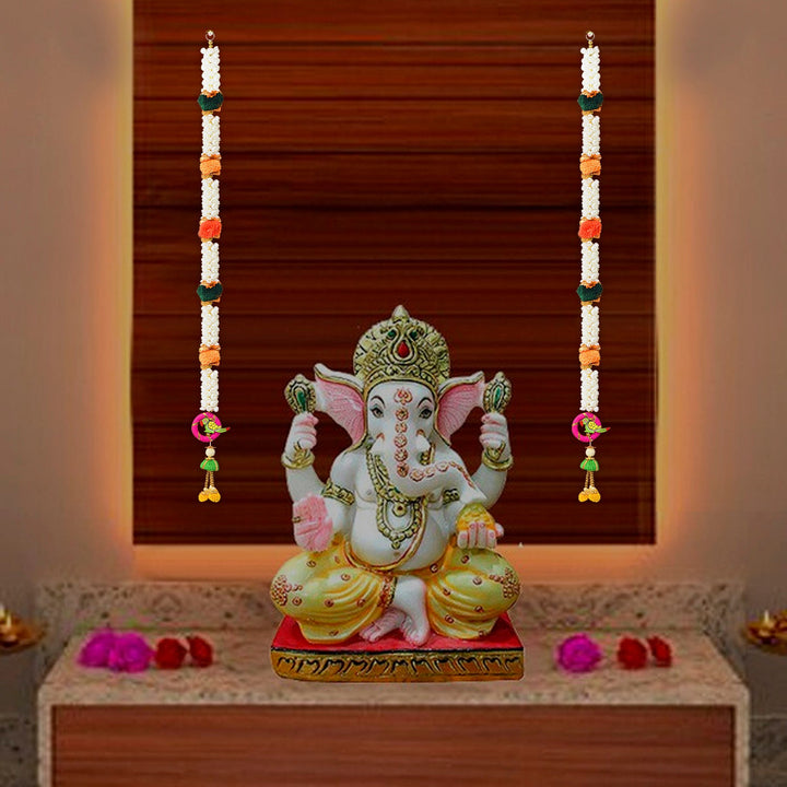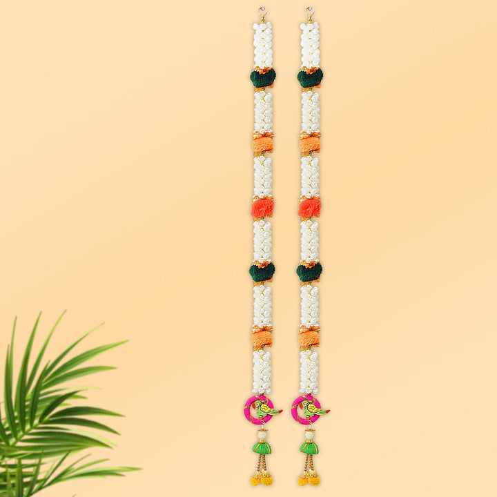 Give your home a traditional and floral touch with these Artificial Jasmine Wall Hanging Latkans (Color-Assorted). Designed with soft jasmine-style artificial flowers, playful pom-poms, and elegant tassels, this pair brings color, culture, and positivity to your walls or pooja space.