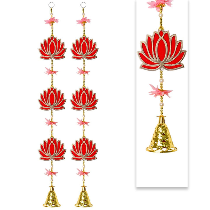 Attractive 3 Tier Lotus with Bells Wall Hanging Backdrop (1Pair Latkans) For Wall Decoration