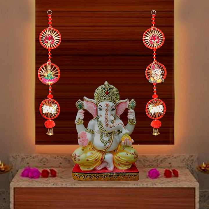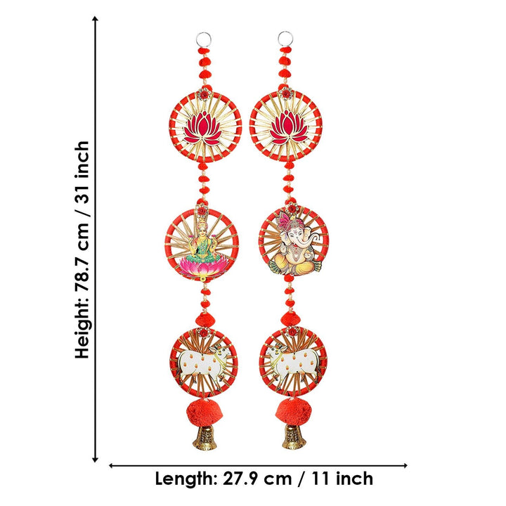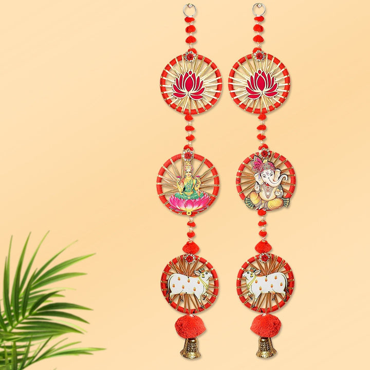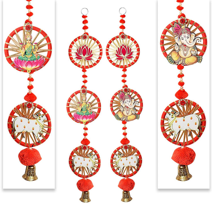 Auspicious Pom Pom Lotus Laxmi Ganesh Cow Side Wall Hangings