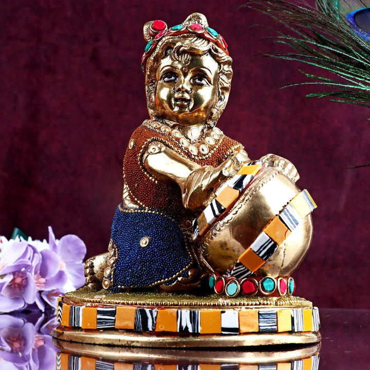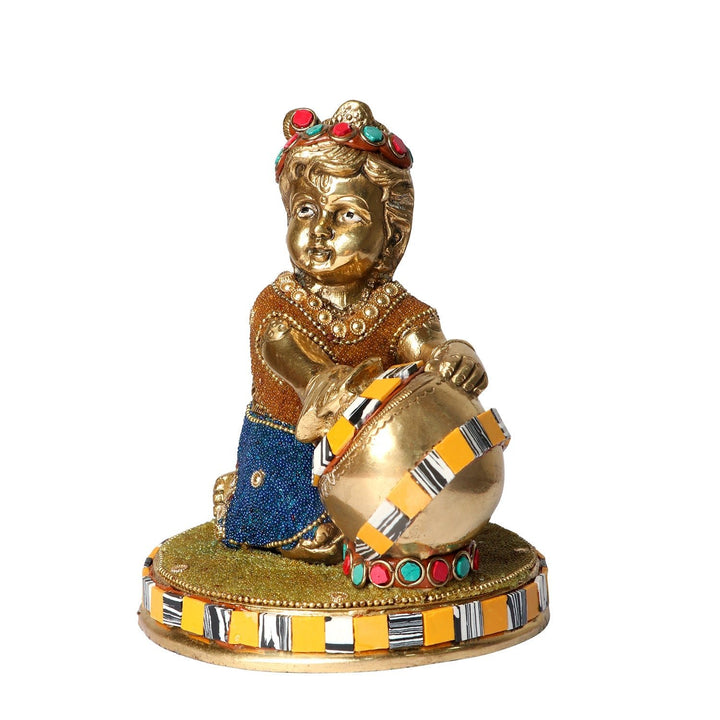 • Item Name: Pure Brass Kanha Ji with Matki Statue