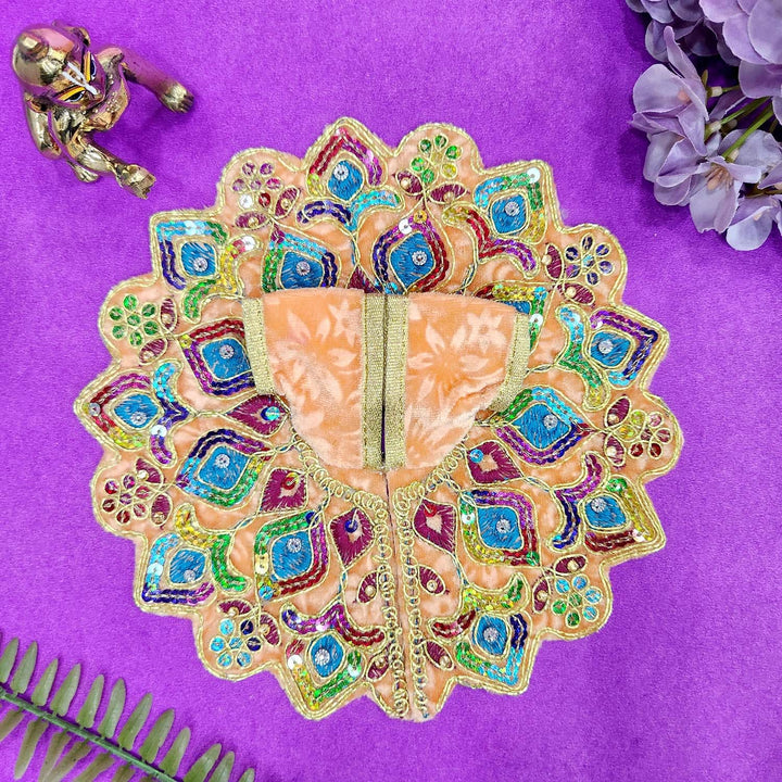 Dress your Laddu Gopal in this elegant blue Dress No.4, Design-2, featuring fine embroidery and intricate design work that brings out divine grace. Perfect for Janmashtami, daily pooja, or festive occasions, this soft and comfortable outfit adds a beautiful devotional aura to your deity’s attire. Crafted to enhance the spiritual ambiance of your temple with style and devotion.