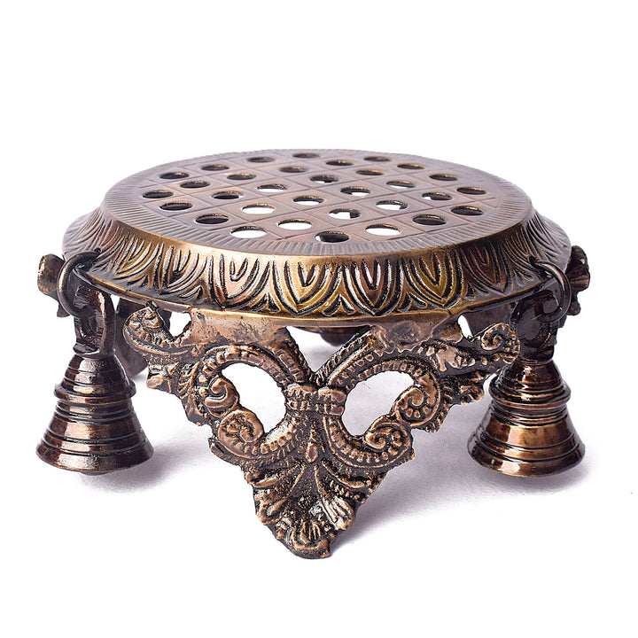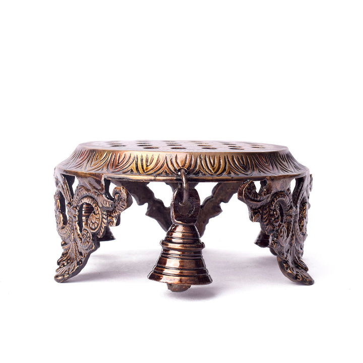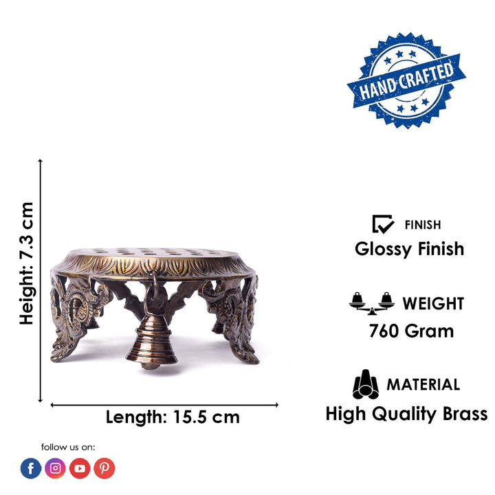 • Item Name: Beautifully Engraved Brass Chowki for Pooja