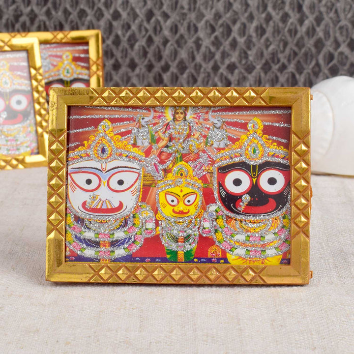 About the Product: Elevate your spiritual journey with the Lord Jagannath frame Car Dashboard Idol – Big. Designed with vibrant colors and divine imagery of Lord Jagannath, Balabhadra, and Subhadra, this wooden frame idol brings the sacred aura of Puri right into your vehicle or sacred space. The larger size makes it more prominent while retaining its travel-friendly build, making it ideal for your dashboard, home altar, or office.
