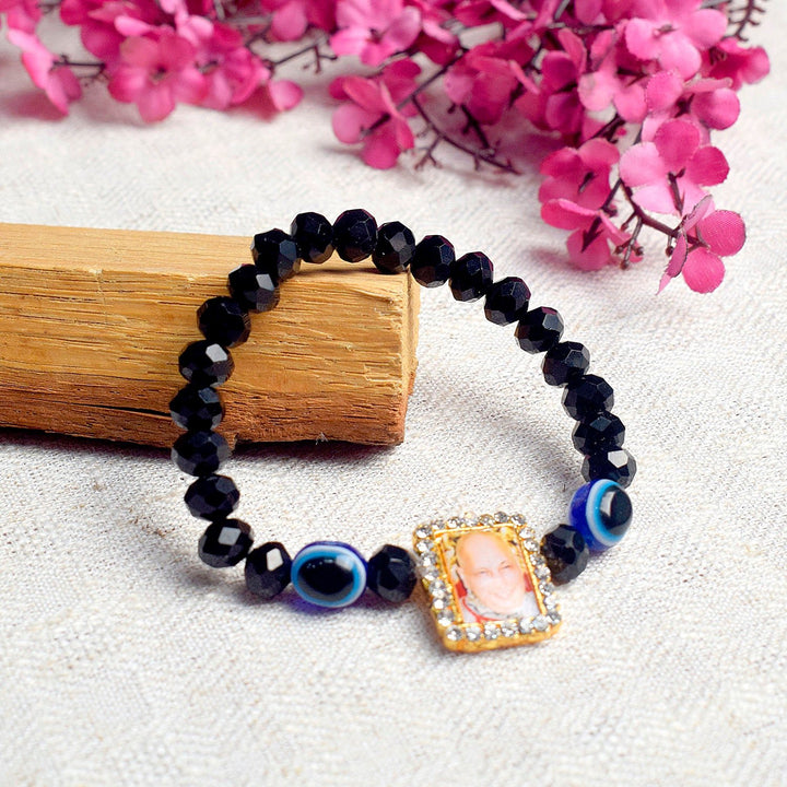 Black Evil Eye Beads Bracelet with Jai Guruji Swaroop for Men and Wome – Satvikworld.com