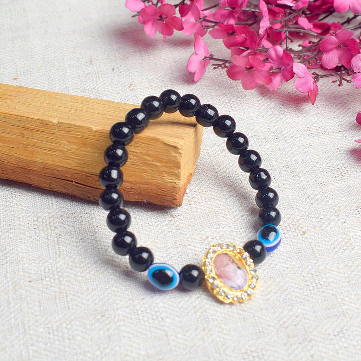 Black Evil Eye Bracelet with Jai Guruji Swaroop Handmade Bracelets for – Satvikworld.com