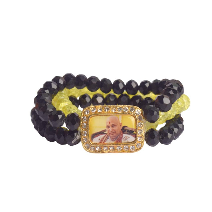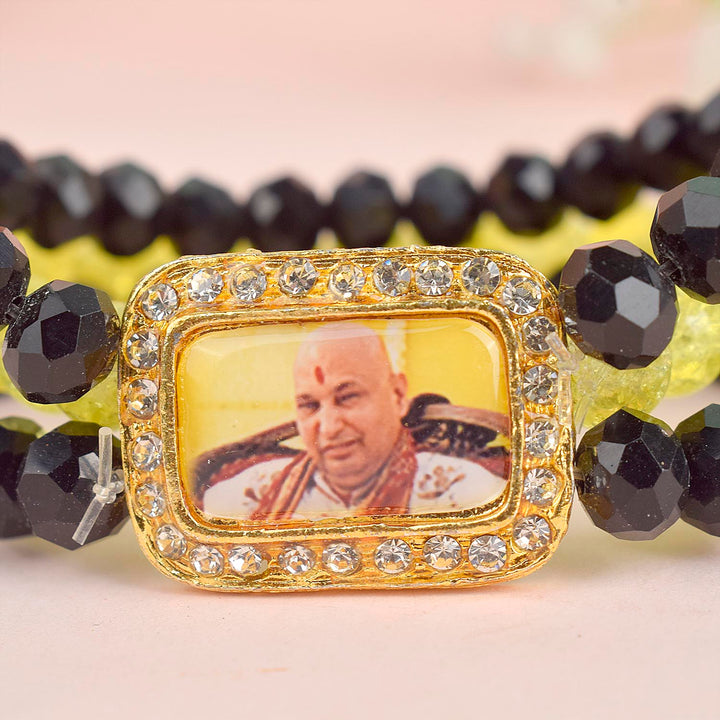 black neon yellow guruji bracelet | triple layer bracelet | black beads bracelet | neon yellow beads bracelet | bold guruji swaroop bracelet | stylish daily wear bracelet | guruji bracelet for men and women | spiritual bracelet india | jai guruji bracelet | handmade spiritual jewellery | pooja return gift | satvikworld bracelet | vibrant spiritual jewellery | multi layer guruji bracelet | electric spiritual accessory | graceful guruji bracelet | india spiritual brand