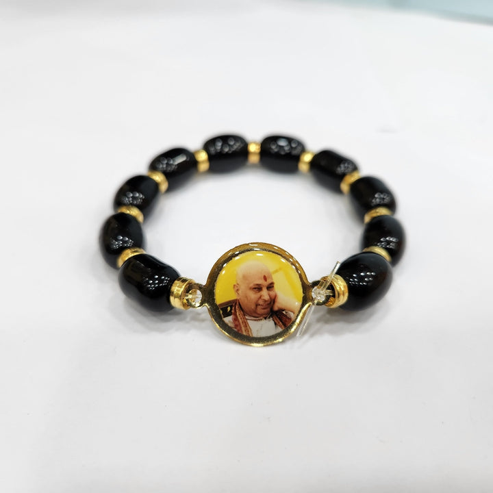 • Item Name: Black Oval Pearl Bracelet with Jai Guruji Swaroop Handmade Bracelets for Men and Women