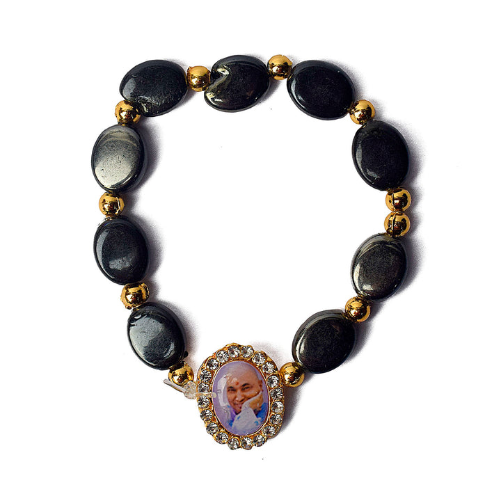 Black Pearl Bracelet with Jai Guruji Swaroop Handmade Bracelets for Men and Women