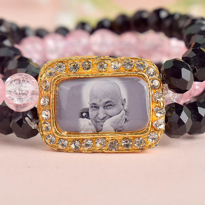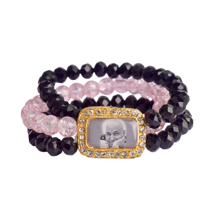 black pink guruji bracelet | triple layer bracelet | black beads bracelet | pink beads bracelet | elegant guruji swaroop bracelet | stylish daily wear bracelet | guruji bracelet for men and women | spiritual bracelet india | jai guruji bracelet | handmade spiritual jewellery | pooja return gift | satvikworld bracelet | multi layer guruji bracelet | feminine spiritual jewellery | vibrant guruji bracelet | graceful guruji bracelet | india spiritual brand