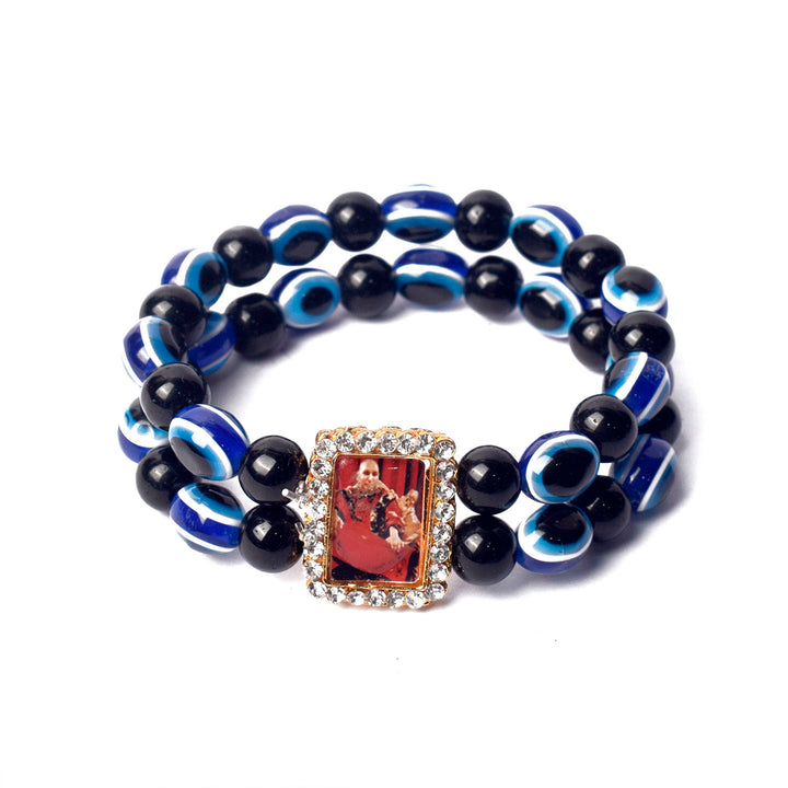 Blue and Black Evil Eye Round Pearl Bracelet with Jai Guruji Swaroop