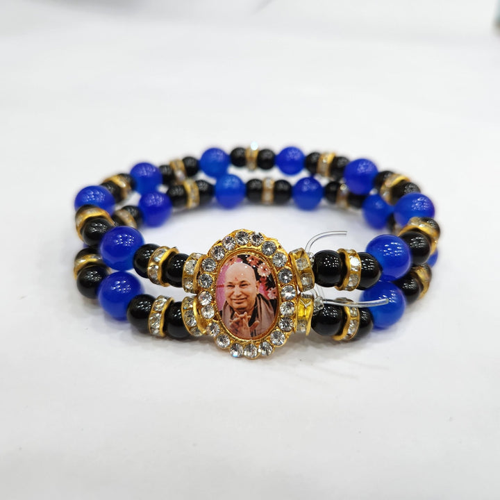 Dark Blue And Black Round Pearl Bracelet with Jai Guruji Swaroop Handmade Bracelets for Men and Women