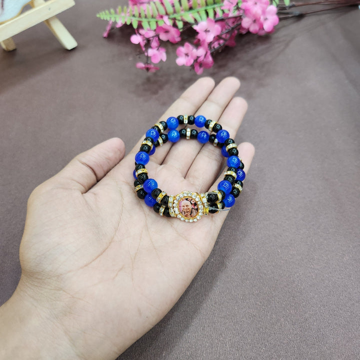 • Item Name: Dark Blue And Black Round Pearl Bracelet with Jai Guruji Swaroop Handmade Bracelets for Men and Women