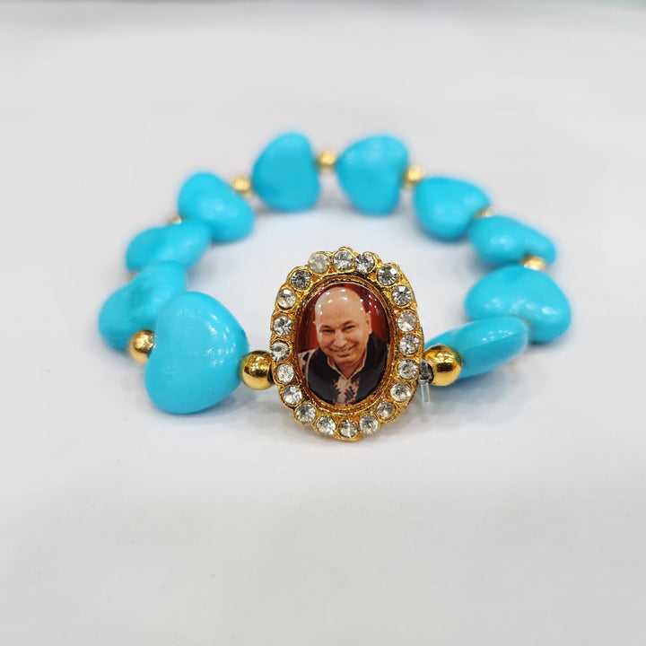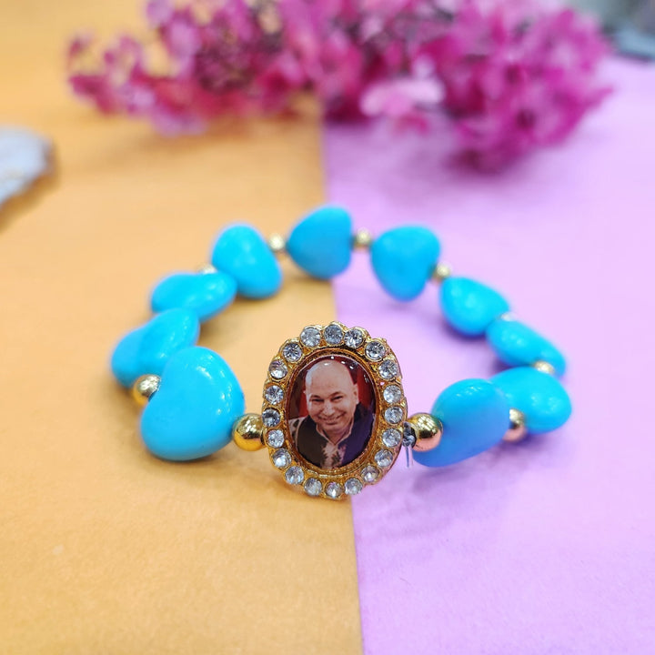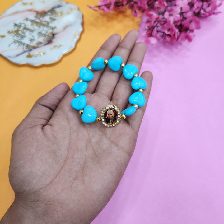 • Item Name: Blue Heart Shape Pearl Bracelet with Jai Guruji Swaroop Handmade Bracelets for Men and Women