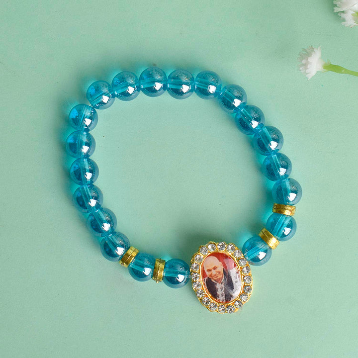 Buy Online | Blue Shiny Single Layer Guruji Swaroop Bracelet | satvikworld.com – Satvikworld.com