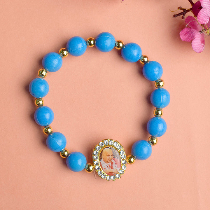 Blue Stone Bracelet with Jai Guruji Swaroop
