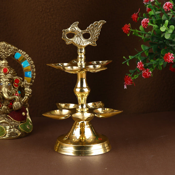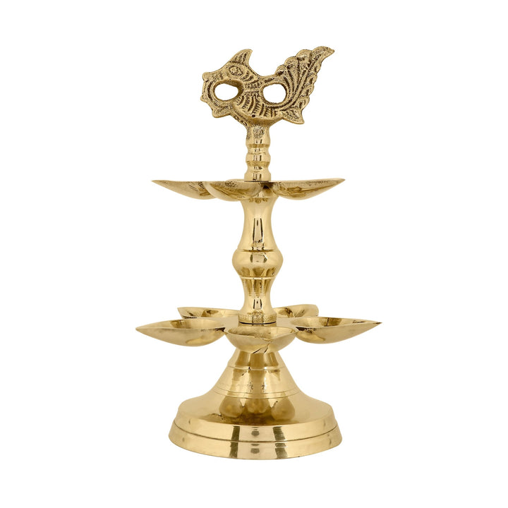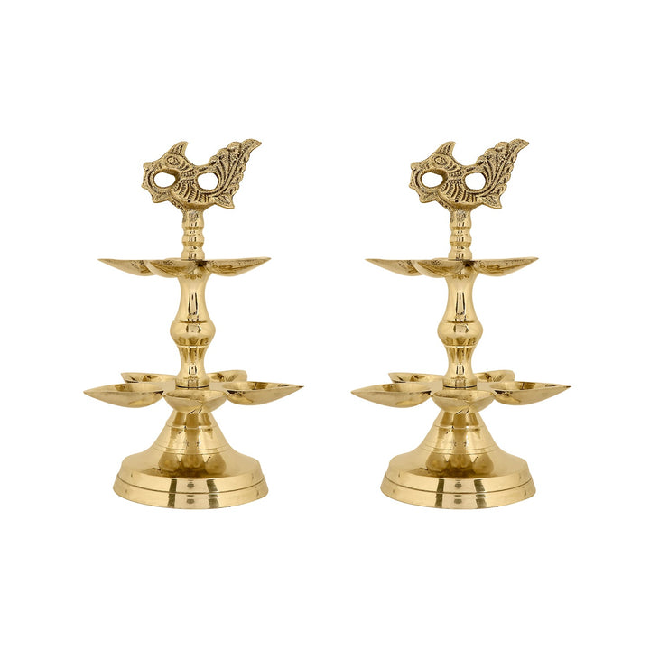 Brass 2 Step Panchmukhi Peacock Kerala Diya – Satvikworld.com