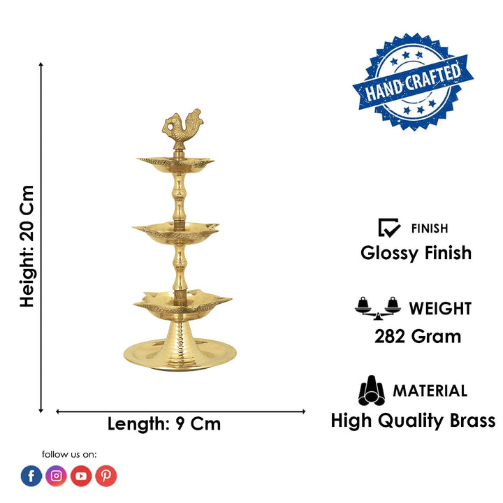 Bring home the elegance of tradition with the Brass 3 Step Peacock Kerala Diya. Beautifully handcrafted from premium virgin brass, this diya features three radiant tiers and a majestic peacock design that symbolizes beauty, grace, and prosperity. Ideal for religious ceremonies, inaugurations, and festive décor, each step holds multiple wicks, creating a divine ambiance. Its sturdy build ensures long-lasting use, while the intricate detailing adds charm to your pooja room or temple. A perfect blend of heritage and craftsmanship, this diya brings a spiritual glow to any occasion.