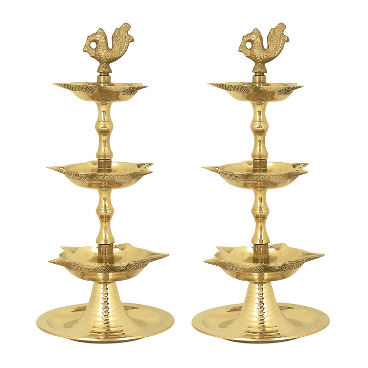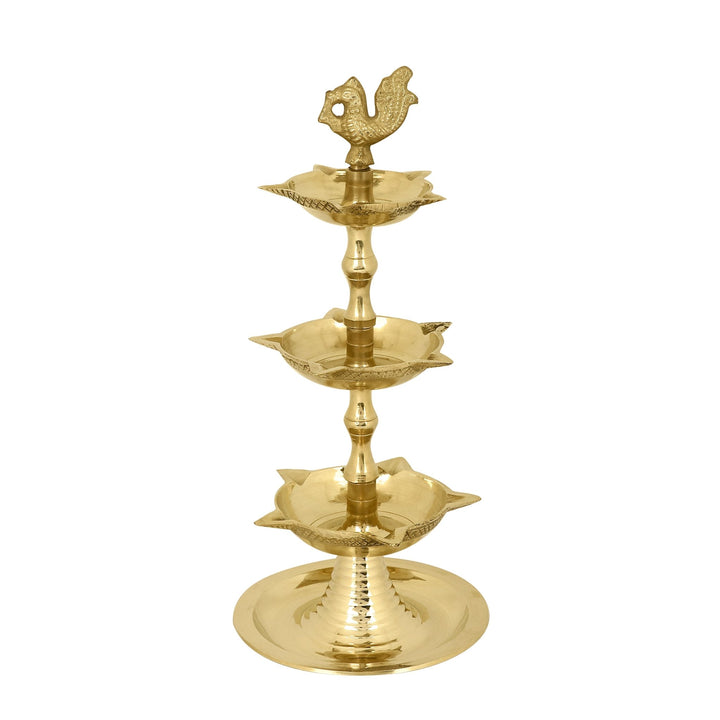 Brass 3 Step Peacock Kerala Diya | 3 Step Brass Peacock Diya | Traditional Kerala Deepam | Peacock Brass Lamp | Brass Inauguration Lamp | Multi-Tier Brass Diya | Spiritual Brass Lamp | Kerala Temple Deepam | Brass Samai Deepam | Brass Oil Lamp | Handcrafted Brass Diya | Indian Ritual Lamp