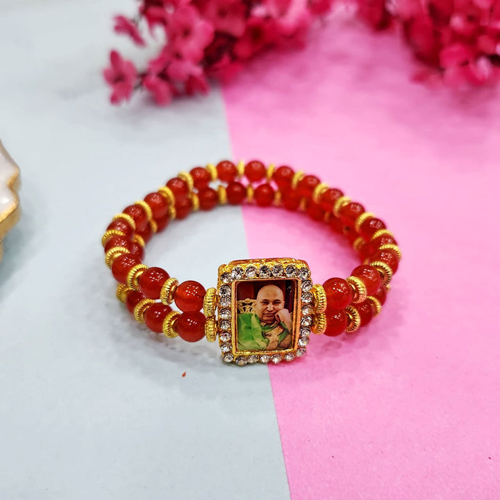 About Product: Guruji Stone Bracelets removes negative energy and and uplift the spiritual, mental and physical Health. Easy to wear, Skin Friendly. You can Gift this Beautiful Beads Bracelets to your family, friends, relative, neighbor on religious occasion like : pooja, kirtan, return gift idea, housewarming, home inauguration, Puja and other. Very beautiful bracelet made of artificial ceramic stones with smooth round finish, each bracelet is handpicked for quality check, Jai Guruji is Photo also there in the bracelet. This is Red and Black matches trend with tradition. Proudly Made in India for Our Devotees.