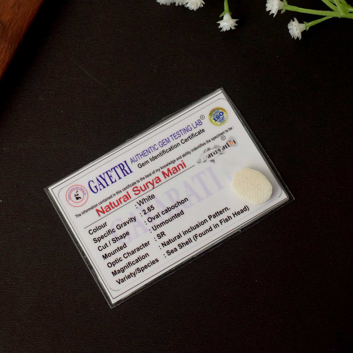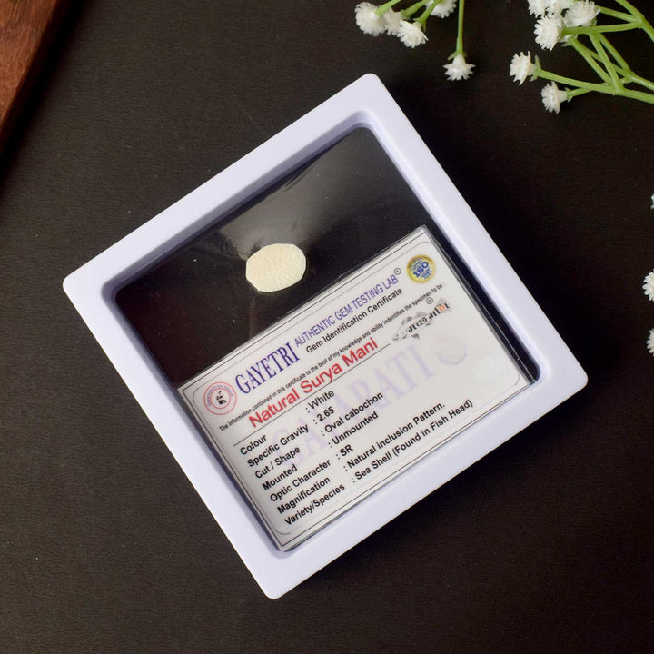 Certified Surya Mani (Machh Mani) in White Finish for Divine Radiance & Sun Energy